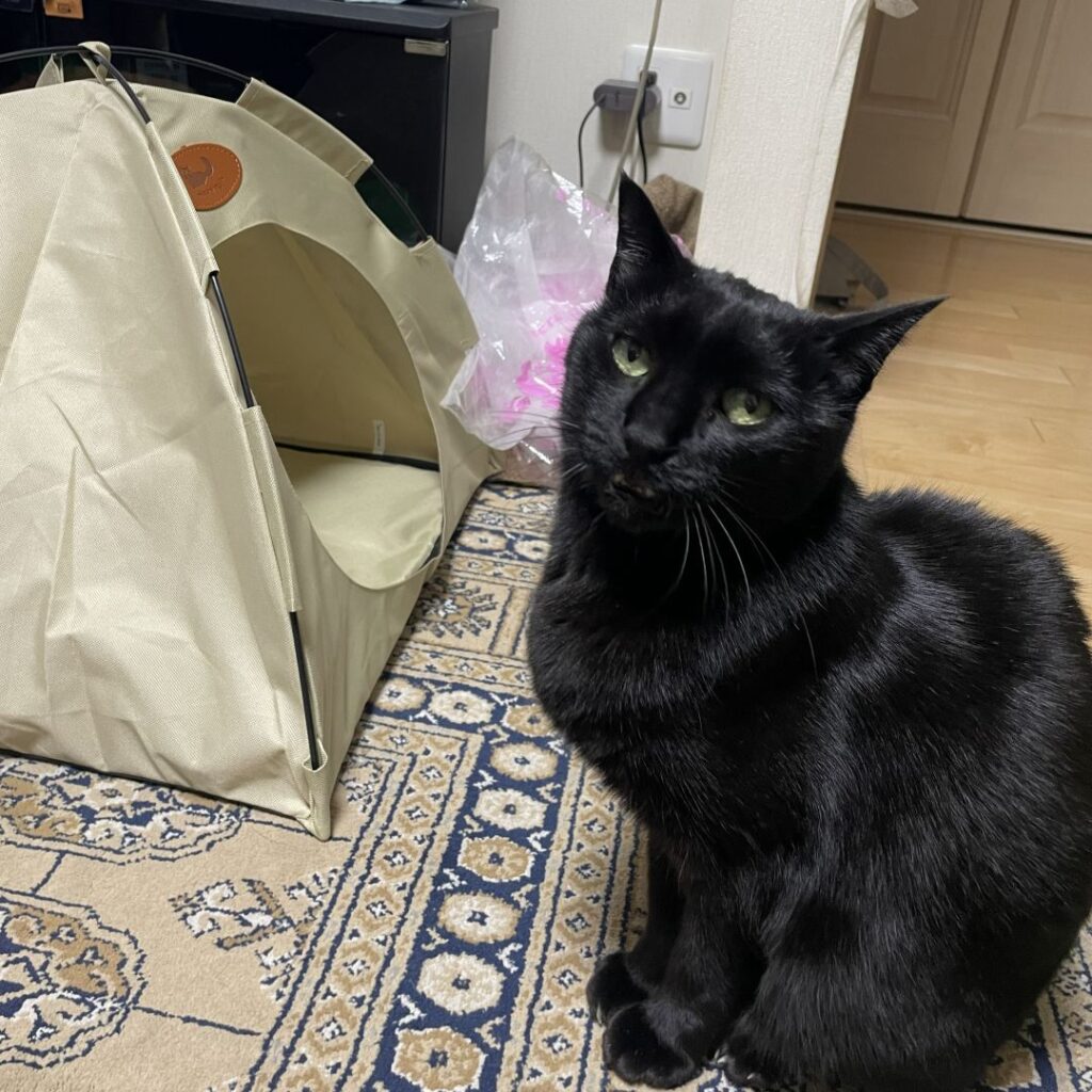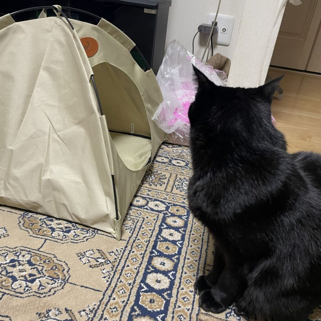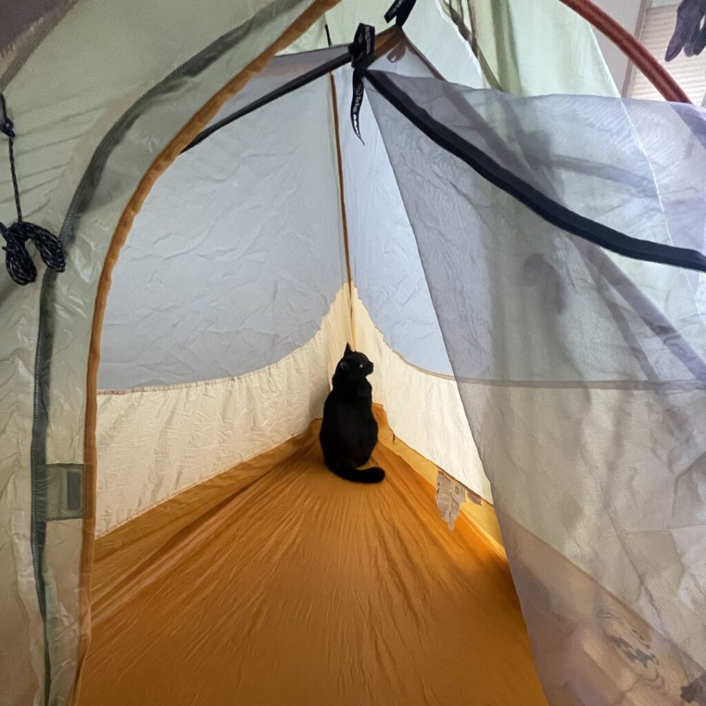 うちの黒助、人間用のテントをこっそり覗いたかと思ったら…気に入りすぎて、まったく出てこなくなってしまったんです。