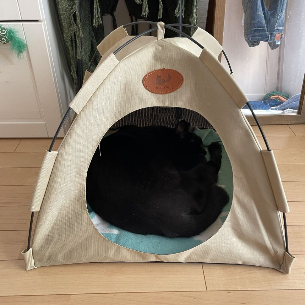 黒助が新しいテントを受け入れてくれた姿を見ると、「やっぱり専用の隠れ家って大事なんだなぁ」と改めて感じました。