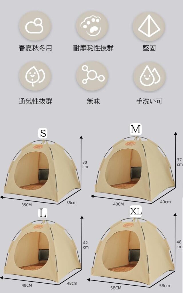 今回選んだペット用テントは、S・M・L・XLの4サイズ展開。